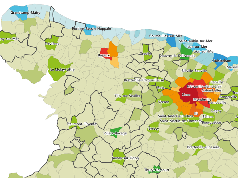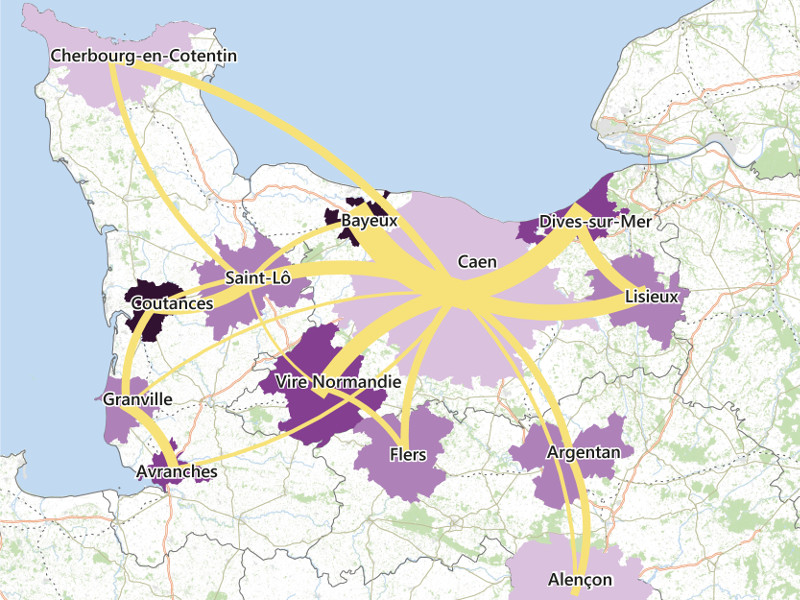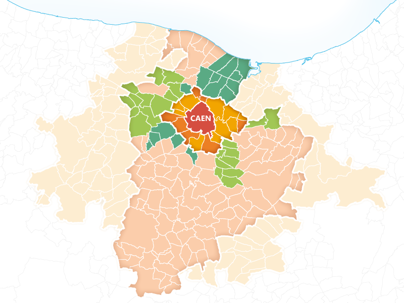 Caen polarise l’ensemble des communes du département du Calvados. Mais celui-ci présente également la particularité d’avoir un maillage régulier de petites villes et de gros bourgs ruraux qui rayonnent sur des territoires de proximité. L’identification de l’armature urbaine permet d’objectiver le fonctionnement urbain à l’échelle du département et constitue un appui pour la mise en œuvre des politiques d’aménagement.