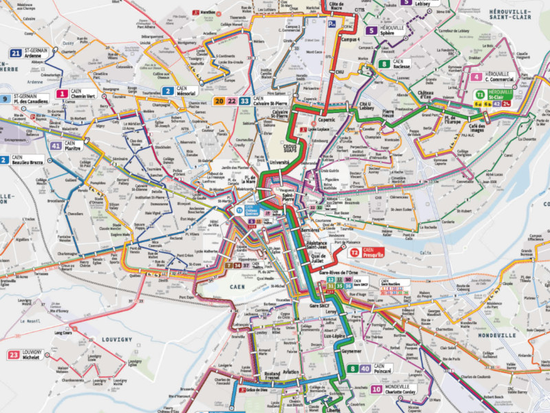 À Caen, les transports publics se sont longtemps limités à des lignes d’omnibus à traction hippomobile, du fait de la taille modeste de la ville. Mais en 1901, trois lignes de tramway sont mises en service qui permettent de parcourir la ville suivant un axe nord-sud pour la ligne principale et deux axes secondaires est-ouest. Les questions d’aménagement qui se posent alors ne sont pas sans rappeler celles qui apparaissent près d’un siècle plus tard.