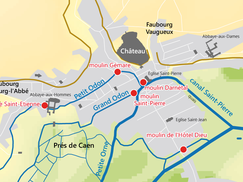 Comme nombre de villes d’Europe, Caen a été qualifiée de « petite Venise », en raison des nombreux cours d’eau, pour la plupart artificiels, qui l’ont parcourue. Mille ans d’histoire des rivières se lisent encore dans le paysage de la ville. Aujourd’hui, de nouveaux usages et perceptions ont déplacé le centre de gravité de l’hydrosystème urbain de l’église Saint-Pierre vers la Presqu’île.