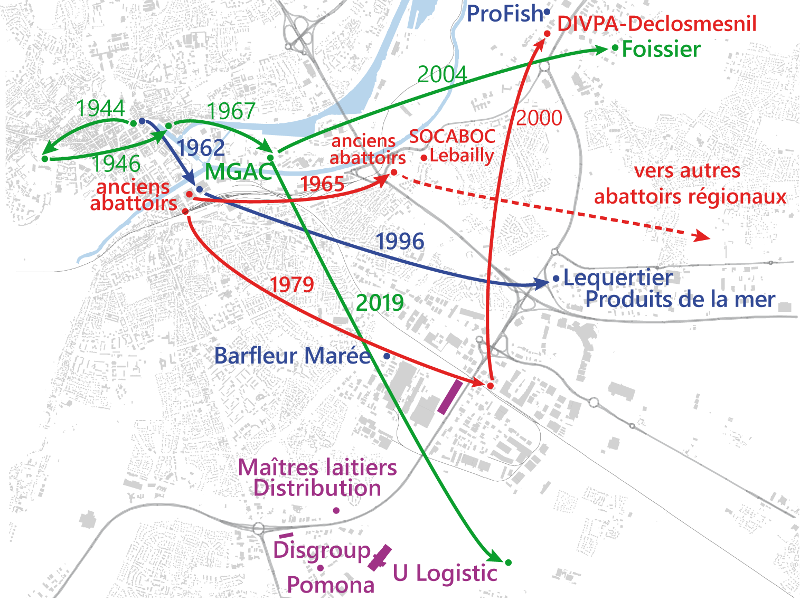 Les entreprises caennaises du secteur de la transformation et de la distribution alimentaires connaissent un mouvement de déplacements vers le sud-est de l’agglomération. Celui-ci correspond à une évolution des modes de transport, à un désengagement des pouvoirs publics, aux logiques des projets urbains et aux stratégies commerciales des groupes.