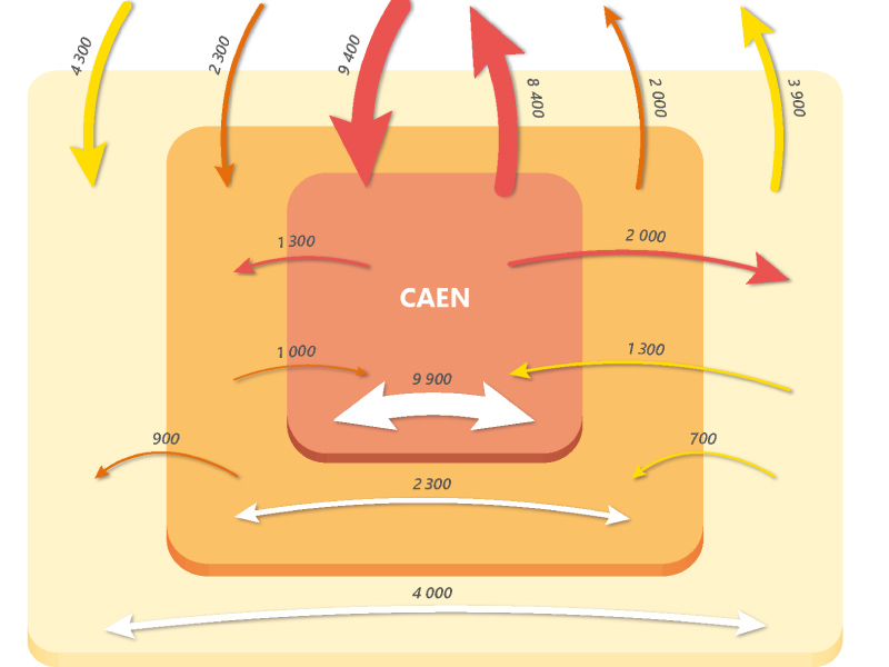 Où travaillent les diplômés de master obtenus à l’Université de Caen Normandie ? Quels sont leurs lieux d’insertion professionnelle 30 mois après avoir quitté l’Université ? Où sont implantés les employeurs recherchant leurs compétences ? Ces questions amènent à dessiner à grands traits l’aire géographique des emplois des étudiants de masters pour la zone d’emploi de Caen.